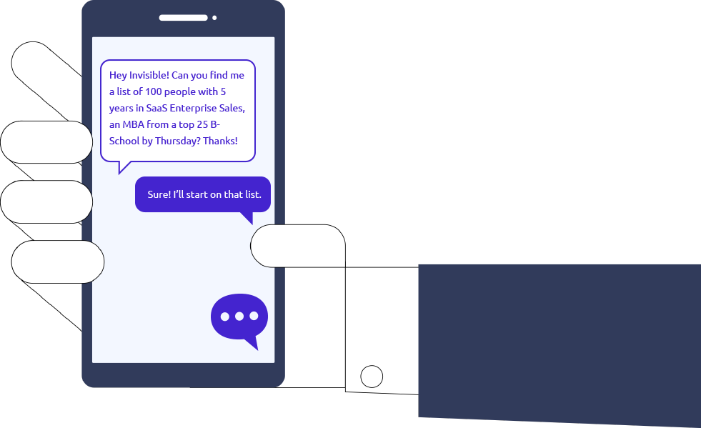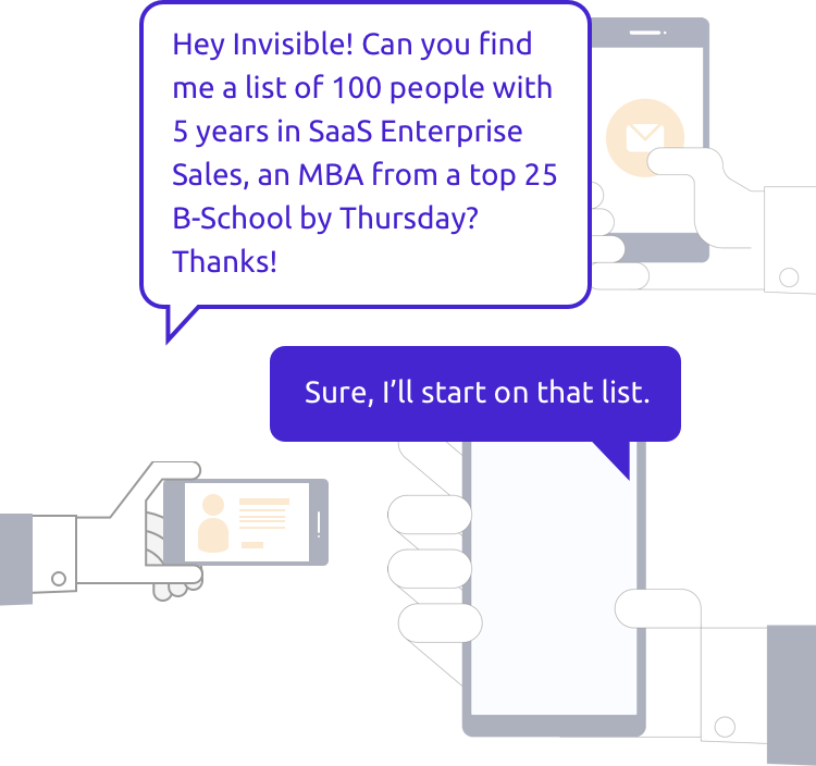 Invisible uses your sources and instructions to build lists of candidate prospects, just the way you like them.